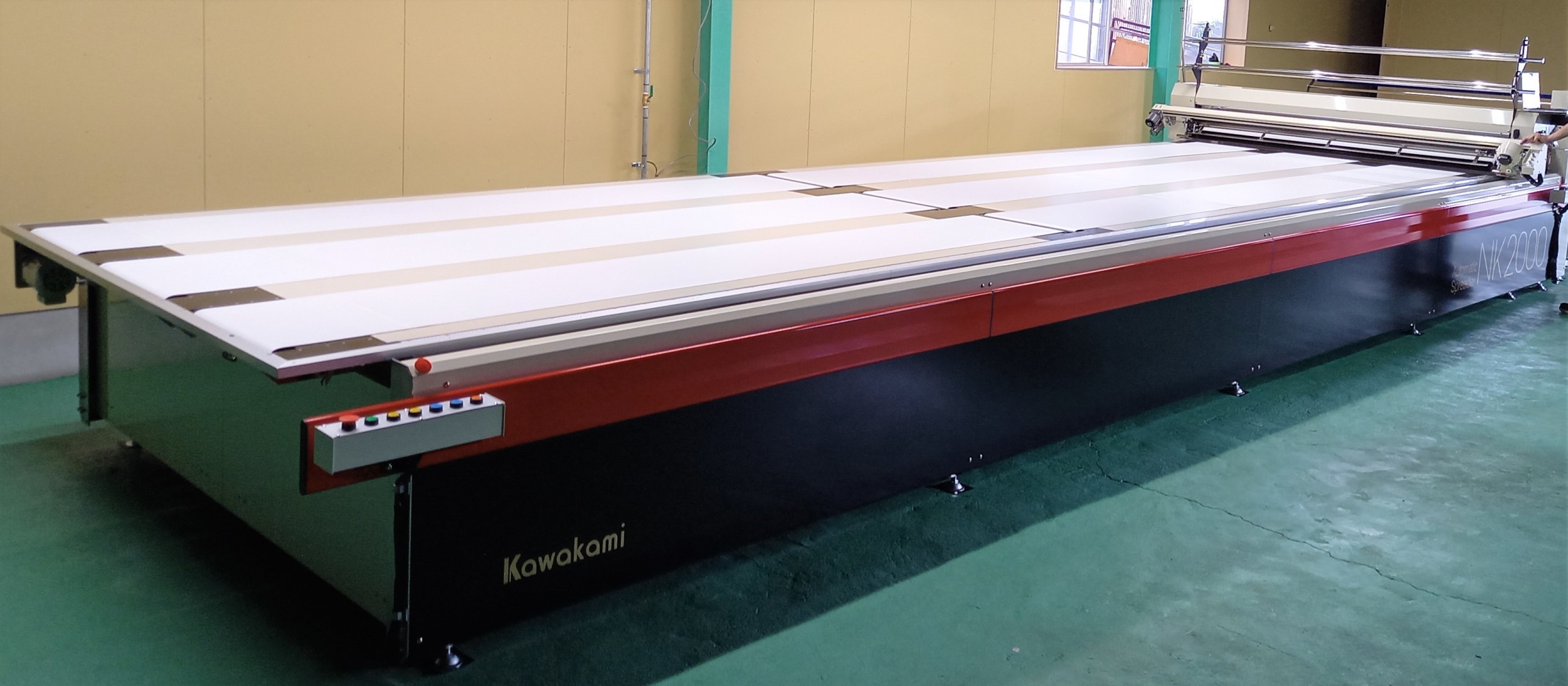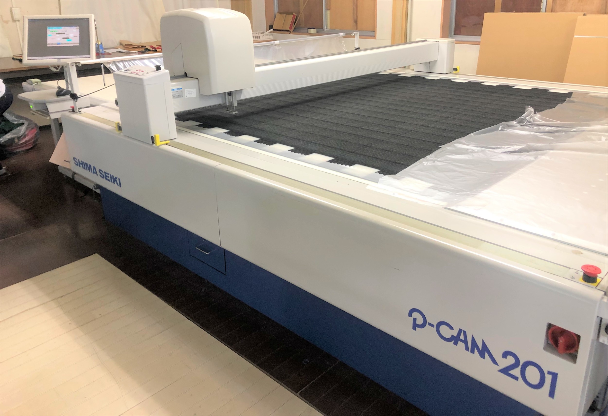 | 延反・裁断 | 高速定寸カットシステムNK2000 1 CAD東レクレアコンポ 1 島精機CAM機 1 裁断機 2 バンドナイフ 2 ハンドカッター 3 プロッタ(2.2m) 1 吹き上げ吸引プレス 2 |